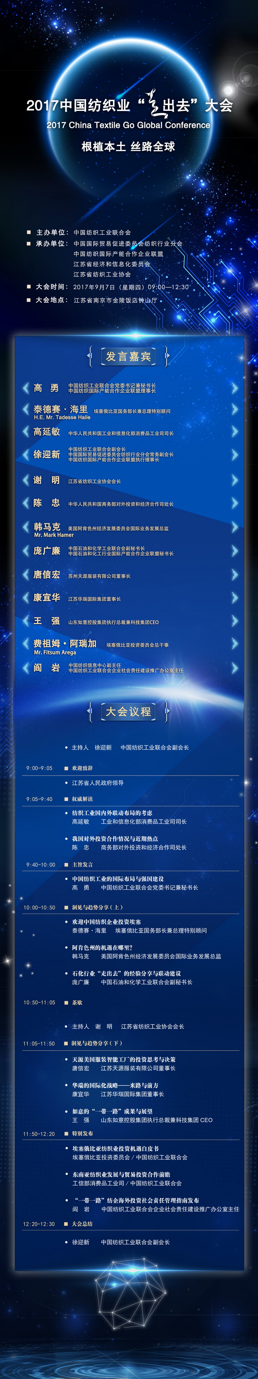 2017中國(guó)紡織業(yè)“走出去”大會(huì)日程