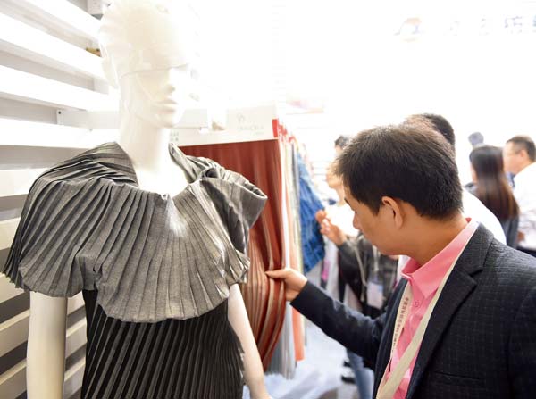 4、在時尚歐洲館的潮流趨勢展區(qū),時尚新潮的面料吸引了買家的眼球。本展區(qū)展示了來自意大利的最新面料。