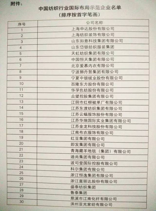 會上,中國紡織工業(yè)聯(lián)合會原副會長許坤元,副會長兼秘書長高勇,副會長楊紀朝,顧問張延愷,會長助理、中國國際貿(mào)促會紡織行業(yè)分會常務副會長徐迎新對“中國紡織行業(yè)國際布局示范企業(yè)”進行了表彰,具體名單如下: