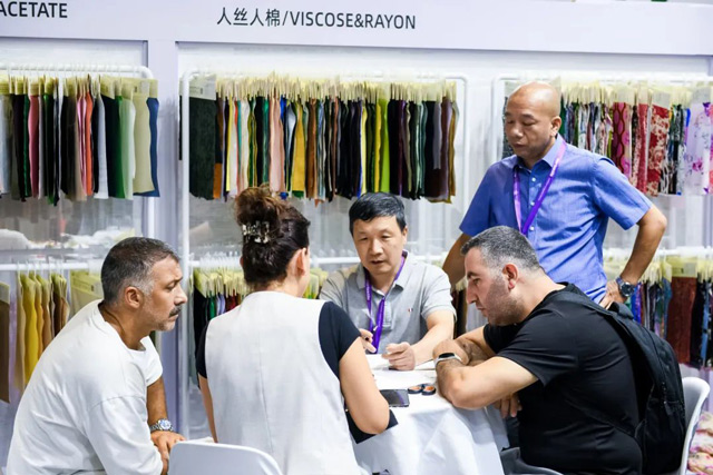 各大展位和貴賓買(mǎi)家區(qū)人潮如織,這里是從紡織源頭激活消費(fèi)復(fù)蘇的“強(qiáng)引擎”。魏橋微納米鑲嵌防系列產(chǎn)品、魏橋國(guó)產(chǎn)萊賽爾高支化系列產(chǎn)品……憑借多款拳頭展品,魏橋紡織股份有限公司的展位上人群絡(luò)繹不絕。