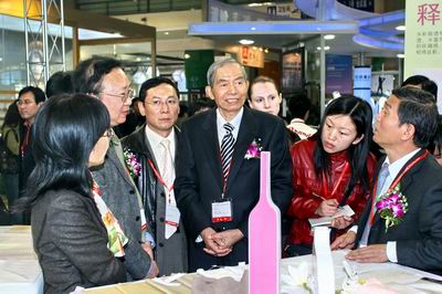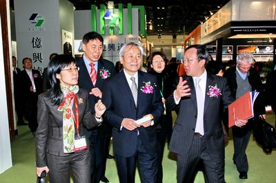 在中國貿(mào)促會副會長楊兆華(右一)的陪同下參觀展會