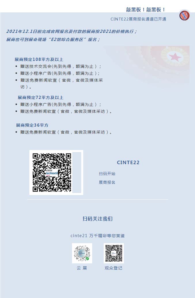6月22日-24日,上海新國(guó)際博覽中心您將在CINTE21現(xiàn)場(chǎng)展位亮相。
