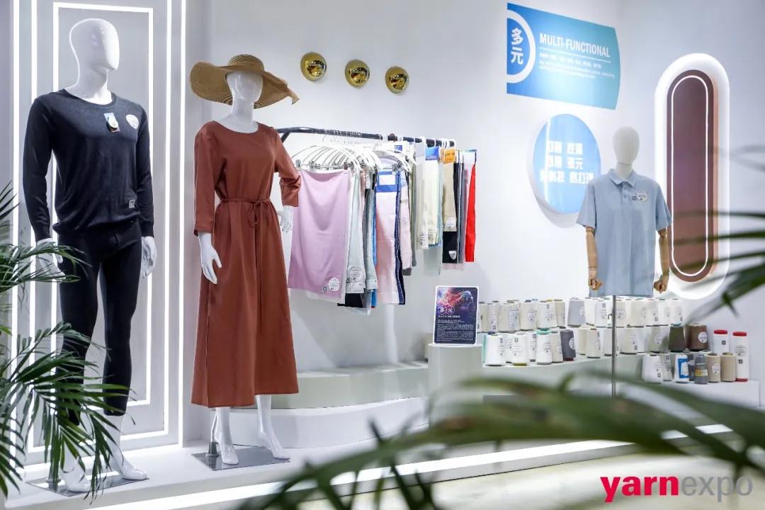 多元展區(qū)聚焦于功能性紗線(xiàn)的展示。從抑菌功能紗線(xiàn)到吸濕透氣紗線(xiàn),從保暖紗線(xiàn)到阻燃紗線(xiàn),再到潤(rùn)膚紗線(xiàn),這里匯聚了多種功能的紗線(xiàn)產(chǎn)品,滿(mǎn)足了不同消費(fèi)者的需求。魏橋紡織生產(chǎn)的微納米鑲嵌紡多重發(fā)熱功能性紗線(xiàn),以其獨(dú)特的發(fā)熱技術(shù)和全棉纖維的親膚舒適感,成為了多元主題的明星產(chǎn)品。