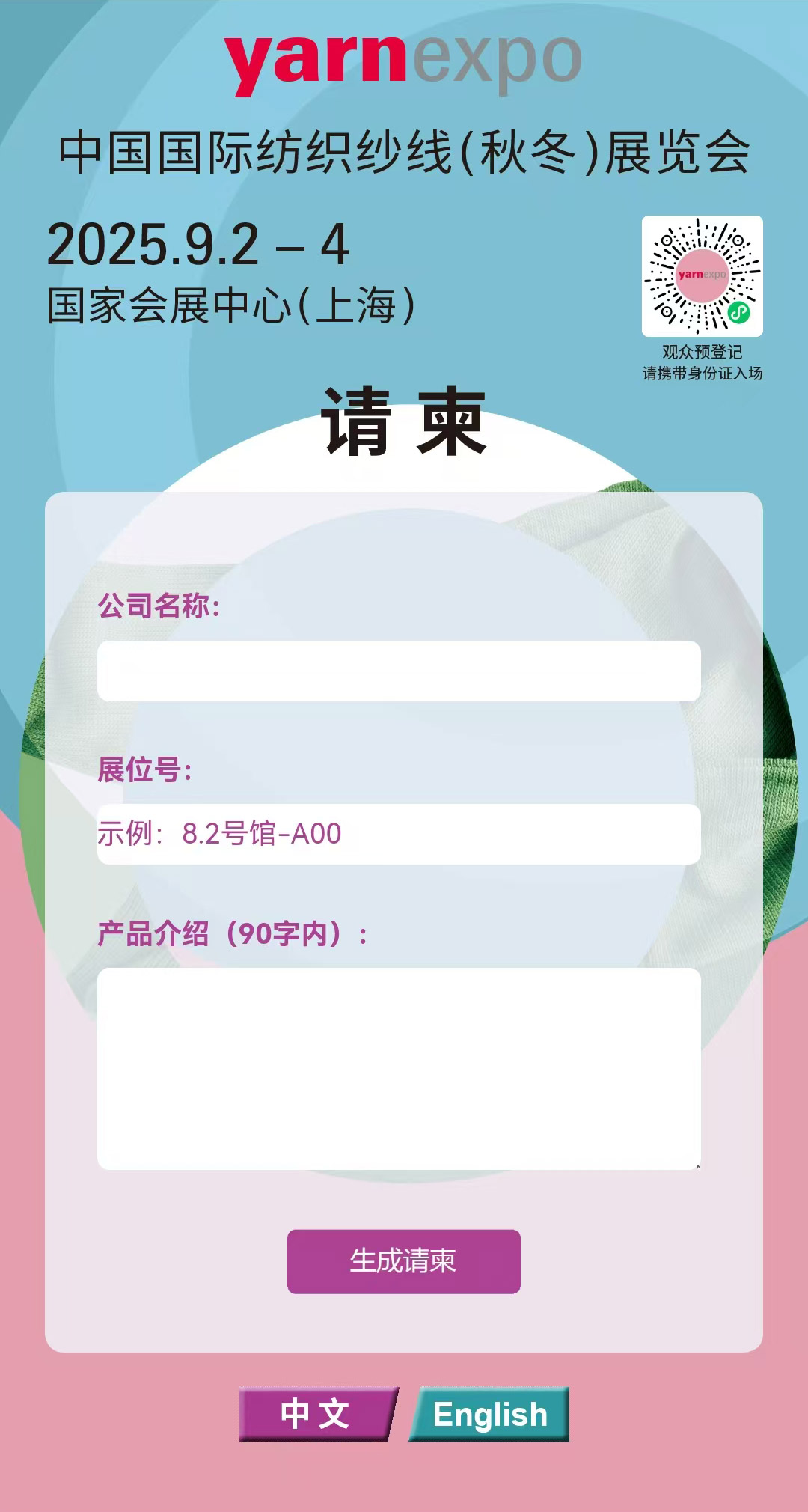 請(qǐng)按要求填寫公司名稱及展位號(hào)、產(chǎn)品介紹等相關(guān)信息,點(diǎn)擊“生成請(qǐng)柬”按鈕。