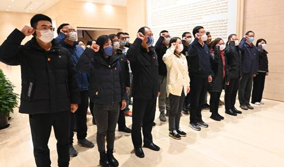 參加活動(dòng)的黨員干部員工在中共一大紀(jì)念館及會(huì)址認(rèn)真聽(tīng)取講解介紹,仔細(xì)觀看照片和實(shí)物展覽,全方位沉浸式地接受了黨性教育和思想洗禮。在宣誓區(qū),全體黨員面對(duì)黨旗,莊嚴(yán)重溫了入黨誓詞。