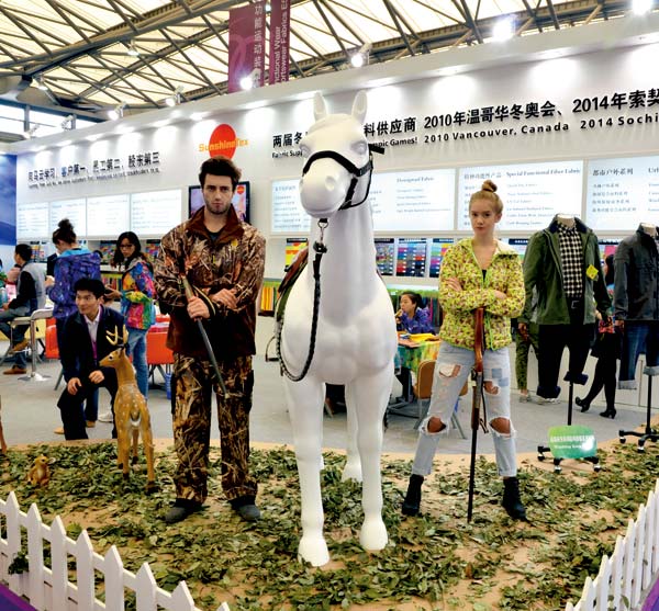 1、一匹白馬, 兩個手持獵槍的洋模特,這個新穎的展位設(shè)計吸引了不少觀眾駐足拍照。原來這是位于E5 館昆山華陽紡織染整有限公司的展位。新穎的設(shè)計加上過硬的產(chǎn)品為企業(yè)帶來了商機,據(jù)介紹, 僅展會這幾天該公司就接待了數(shù)百個客戶。