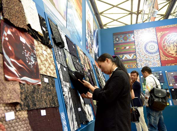 4、在時尚歐洲館的潮流趨勢展區(qū),時尚新潮的面料吸引了買家的眼球。本展區(qū)展示了來自意大利的最新面料。