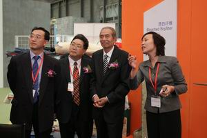 在中國貿(mào)促會紡織分會副會長富榮沛陪(左二)同下參觀博覽會